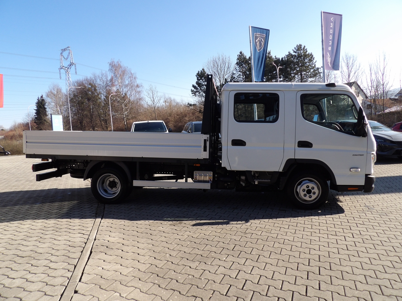 NOVÝ FUSO CANTER 3C15, s vlníkovou nástavbou SCATTOLINI, společně s hliníkovými bočnicemi, rok výroby 2022, najeto 2 544 km, barva bílá, motor 2 998 cm3, 110 kw