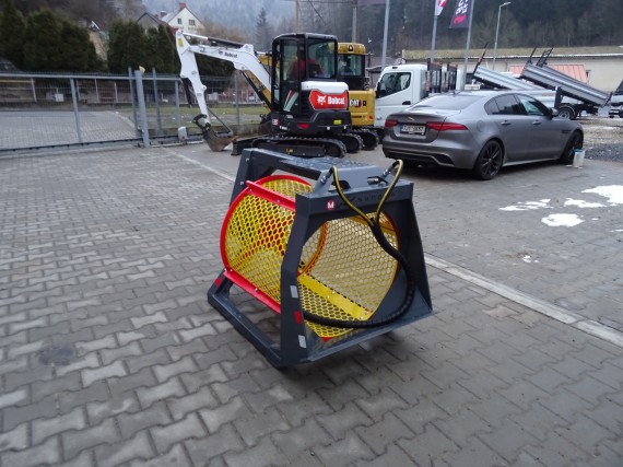 Určeno pro stroje o hmotnosti od 2 000 kg do 5 000 kg, hmotnost cca 250 kg dle provedení, objem 250 litrů, výměnná panelové síta, v základní výbavě síta ocelová, standard rozměr dle dohody, pohon hydro motorem, průtok oleje 40 litrů/minutu.