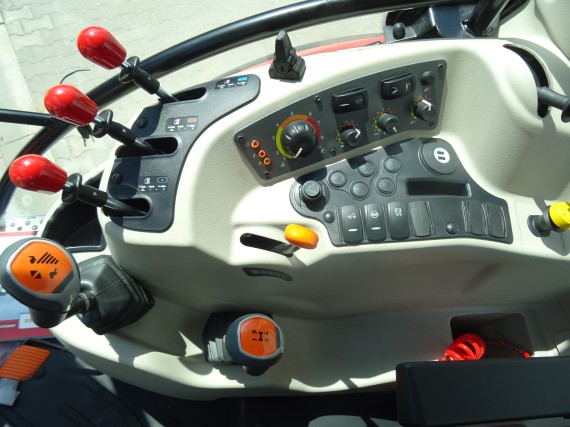 Přední otočné blatníky, vnější ovládání tříbodového závěsu, přední závaží 8x30 kg + 50 kg, zadní závaží 4 x 45 kg. Odpružená kabina, vzduchové sedadlo řidiče, pneumatické brzdy, automatický zadní závěs.